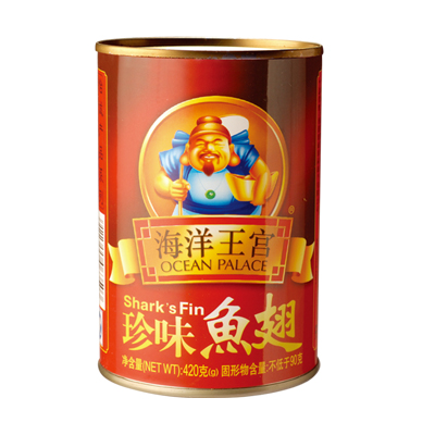 产品选用海洋纯净水域中的优质野生鱼鳍为原料,由权威专家细心调煮,配合鸡丝、火腿、竹笙、干贝、鲍贝、冰糖等多种优质食材,以独门配方熬煮底汤,加工过程不使用化学防腐剂及味精,经多道工序反复炖煮制成。产品汤汁色泽均匀,晶莹剔透,味鲜甜而浓郁,翅身爽弹多汁,腴滑甘润,温和滋补,汤内伴有鲍贝、竹笙等配料,使口感丰富多样,营养十足。产品外观美轮美奂,内容物十足,食用方便快捷,开罐后易于保存,是居家烹调,宴席餐饮的首选产品。