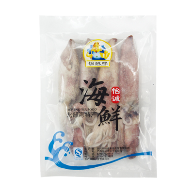 鱿鱼体型呈光滑的流线型,其肉质清甜爽脆,咸鲜怡人,营养价值丰富,被誉为海味珍品。本产品选用北部湾海域捕捞的鲜活鱿鱼为原料,运用专业冷链物流运输设备,把鱿鱼迅速地运送到洁净的生产车间内,由专人细心清洗,修剪并去除内脏,再以完善的冷冻保鲜技术和崭新的高端流水生产线进行生产加工,使鱿鱼能在新鲜状态下加工成为速冻产品。加工后的鱿鱼完好无损,触须齐整,肉色自然,肉质爽弹,保留了鲜活鱿鱼的鲜美品质。